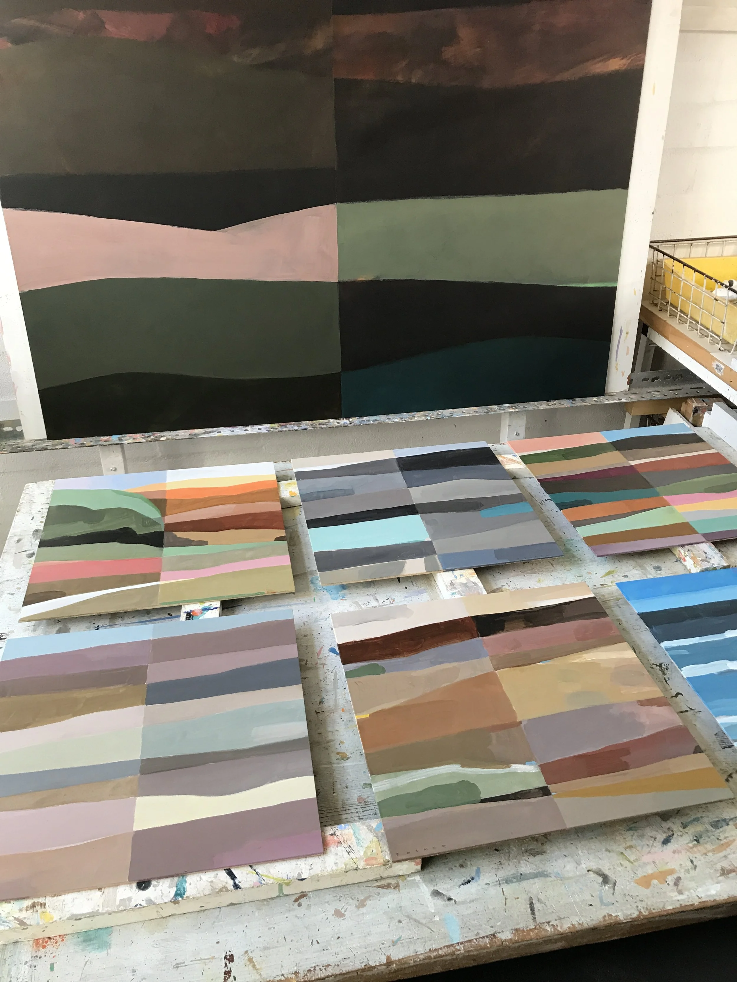 These semi-abstracted landscape works are from 2018.
